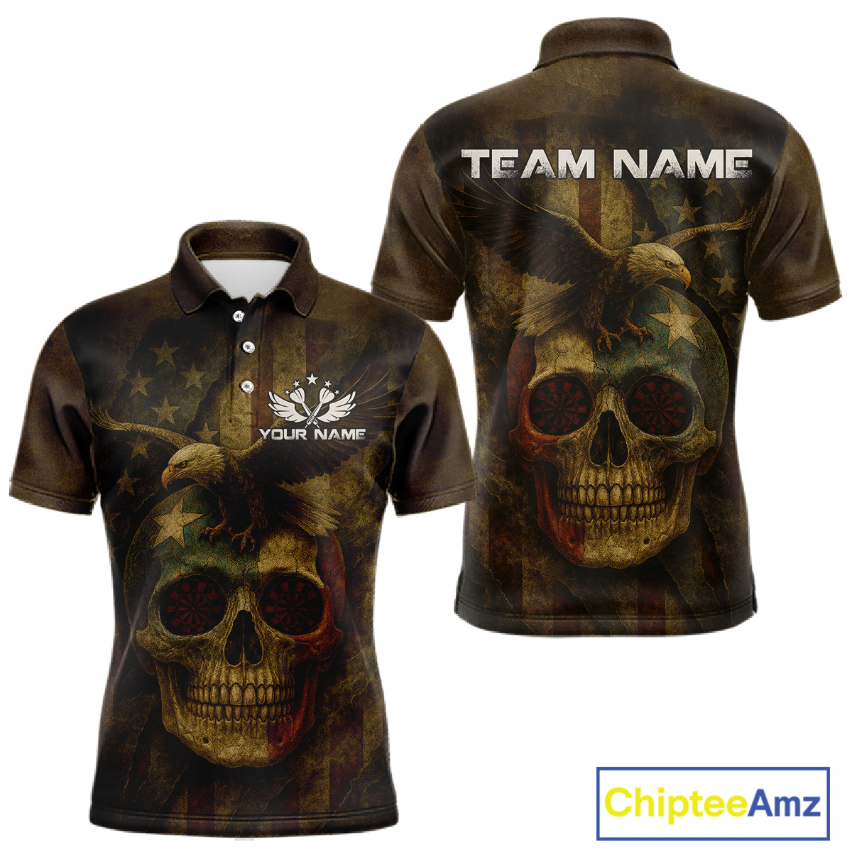 Custom Skull Eagle Grunge Polo Dart Shirt For Men Retro Patriotic Dart Jerseys NYN1337