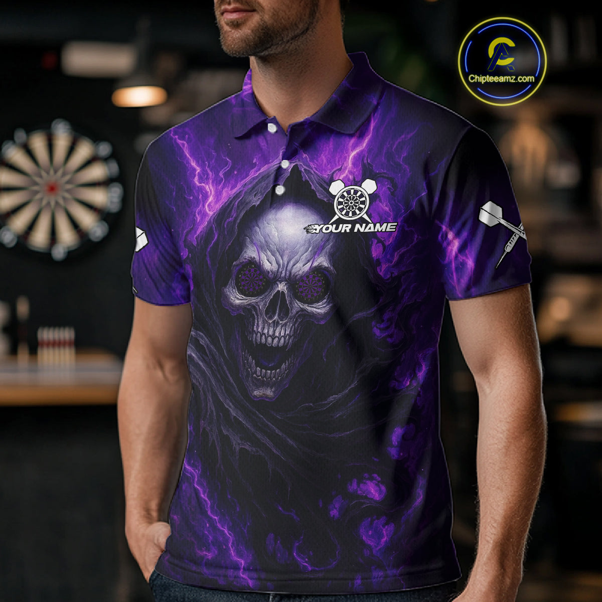 Custom Black-Purple Lightning Skeleton Dart Shirt For Men Dart Tournament Jerseys NYN1405