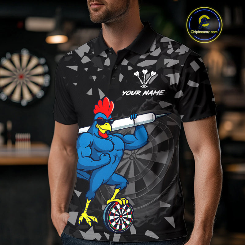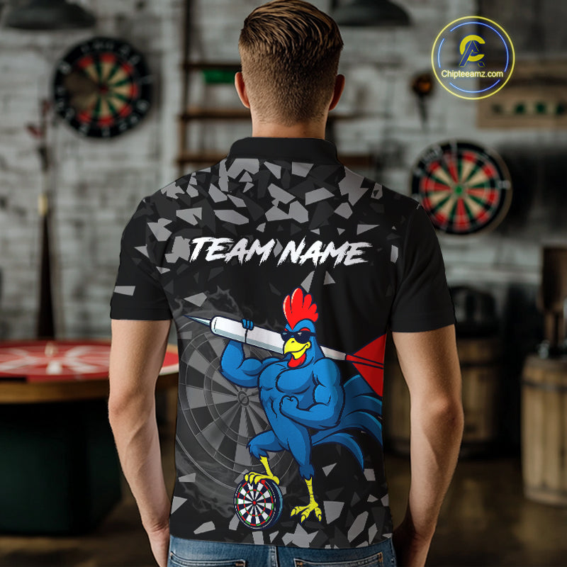 Custom Black And Blue Funny Rooster Dart Polo Shirt For Men Outfit Dart Team Jersey NYN1459