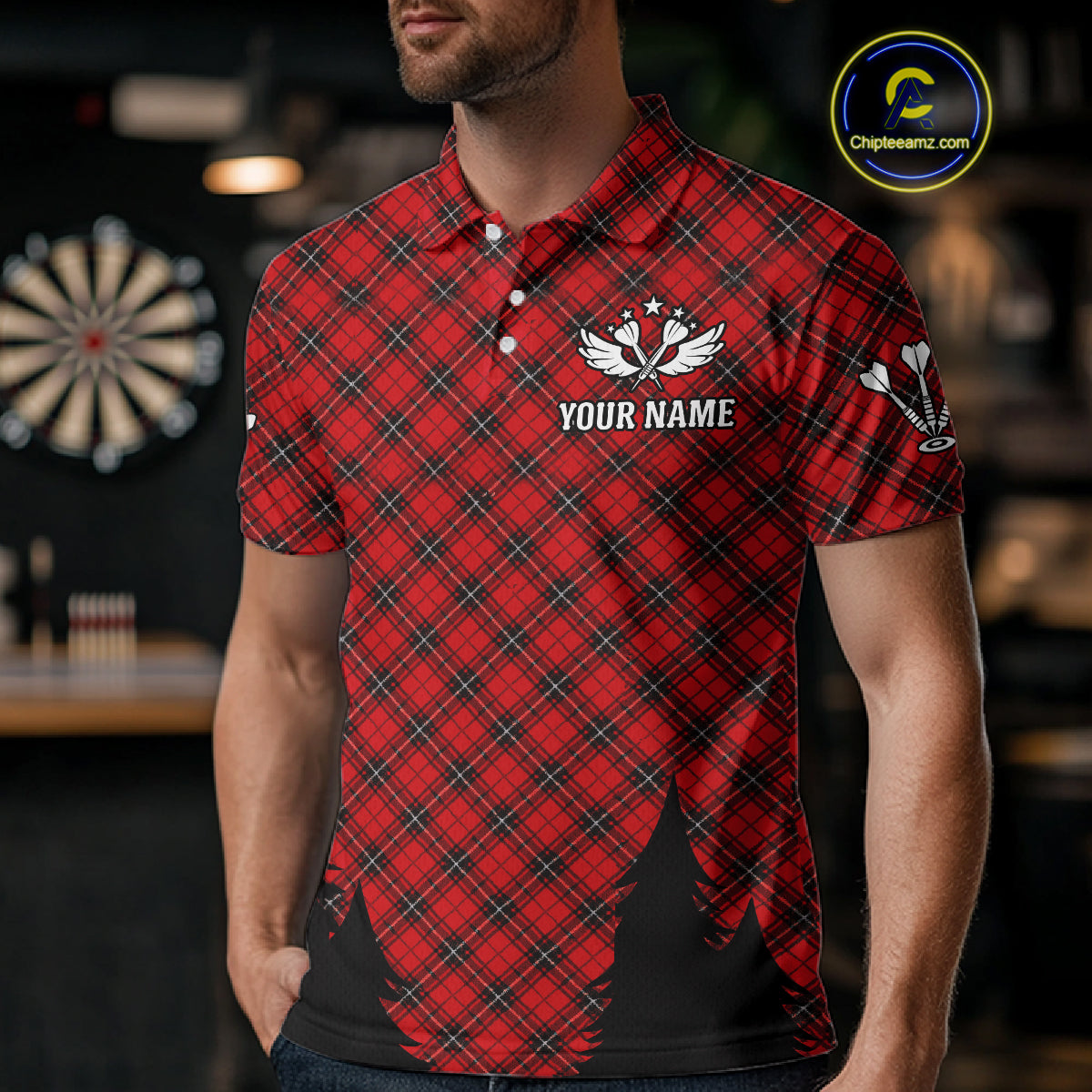 Custom Black And Red Rooster Funny Dart Polo Shirt For Men Outfits Dart Team Jersey NYN1461
