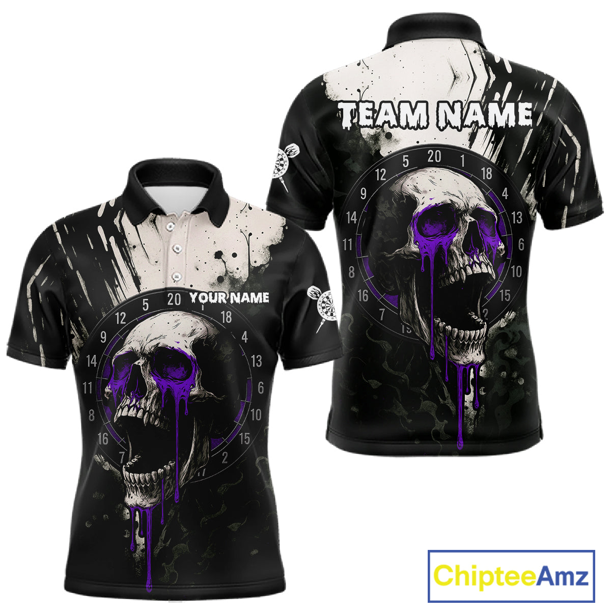 Custom Black & Purple Dripping Skull Dartboard Dart Men Polo Shirt Grunge Dart Jerseys NYN1565