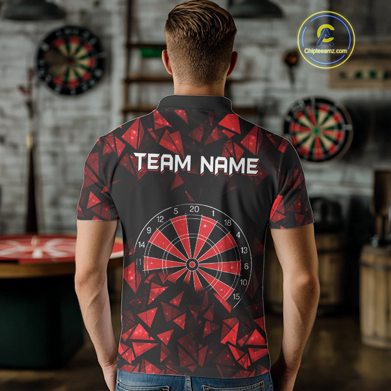 Custom Black & Red Geometric Dartboard Dart Polo Shirt For Men Outfits Dart Jerseys NYN1607