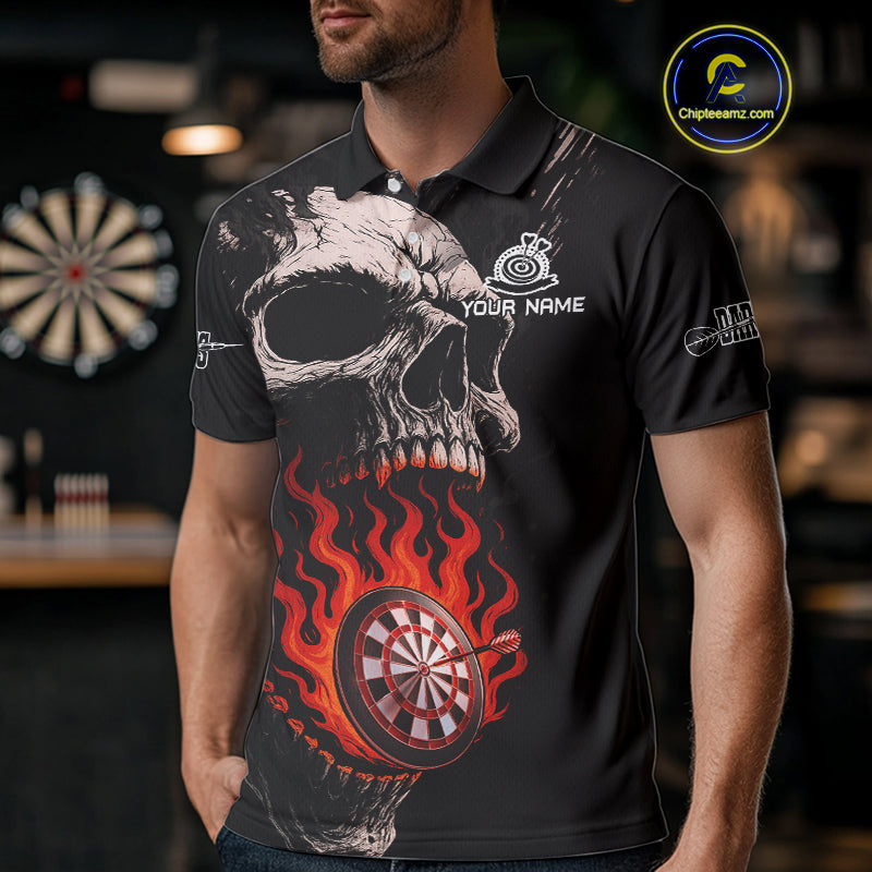 Custom Red Flames Skull Dartboard Dart Men Polo Shirt Grunge Dart Team Jerseys NYN1613