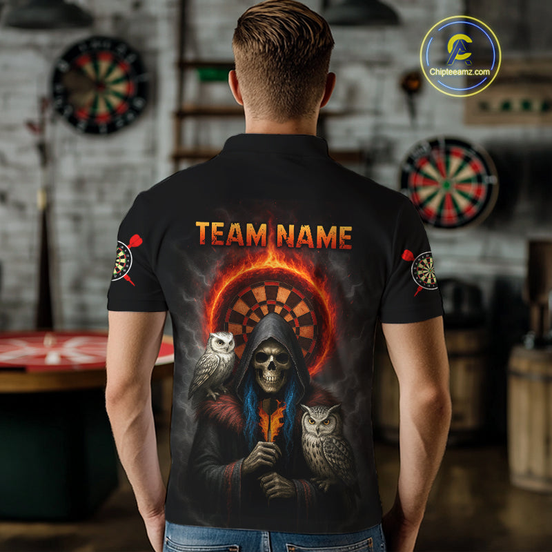Custom Smoke Grim Reaper Flames Dartboard Dart Men Polo Shirt Outfits Dart Jerseys NYN1616