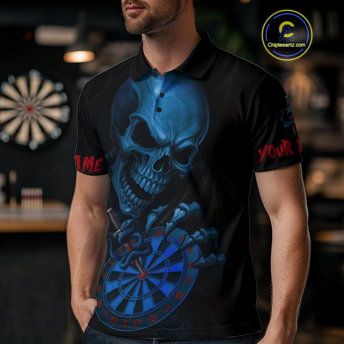 Custom Blood Cobra Blue Dartboard Skeleton Dart Men Polo Jerseys Dart Team Shirt NYN1653