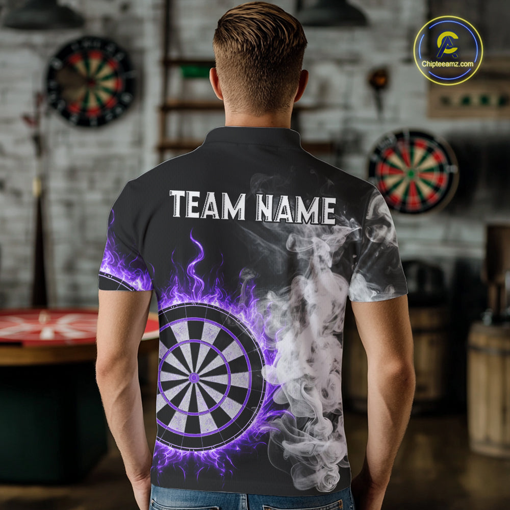 Custom White Smokes Purple Flames Dartboard Dart Men Polo Jerseys Dart Team Shirt NYN1669