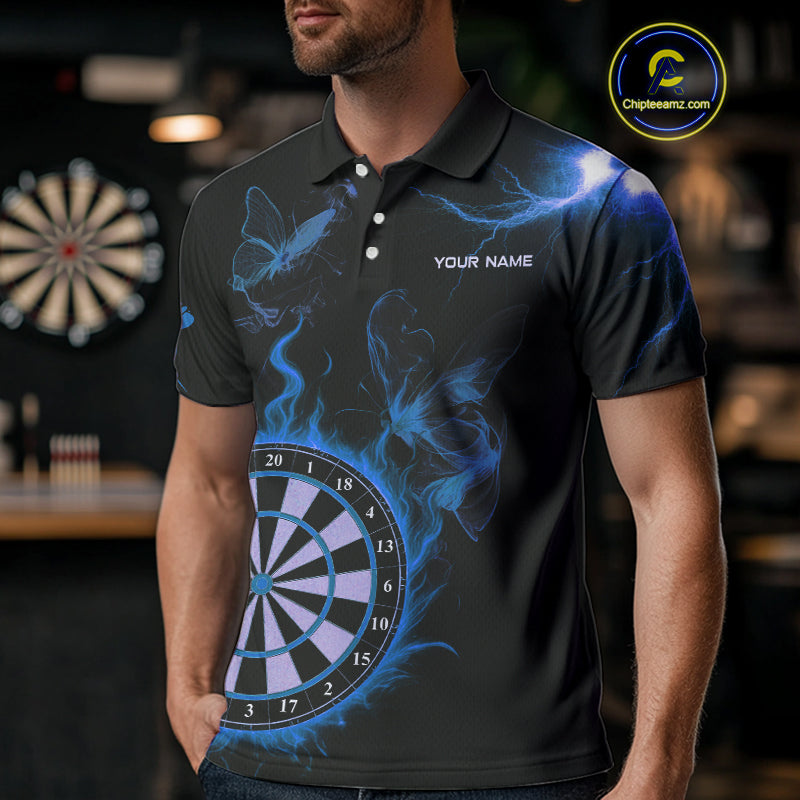 Custom Blue Smokes Butterfly Flame Dartboard Dart Men Polo Jerseys Dart Team Shirt NYN1677