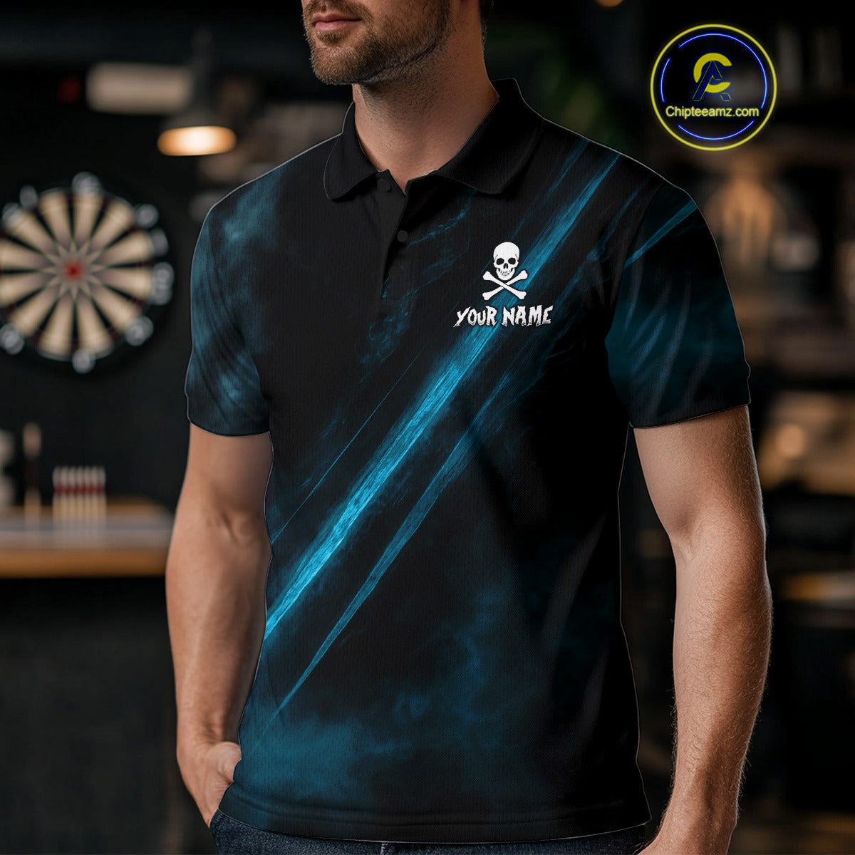 Custom Silver Skull Dartboard Lightning Turquoise Dart Men Polo Jerseys Outfits Dart Shirt NYN1712