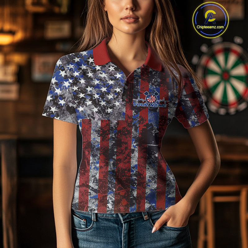 Custom US Flag Camo Patriotic Dart Polo Shirts For Women, Dart Jersey Dart Team Uniform IPHW9695