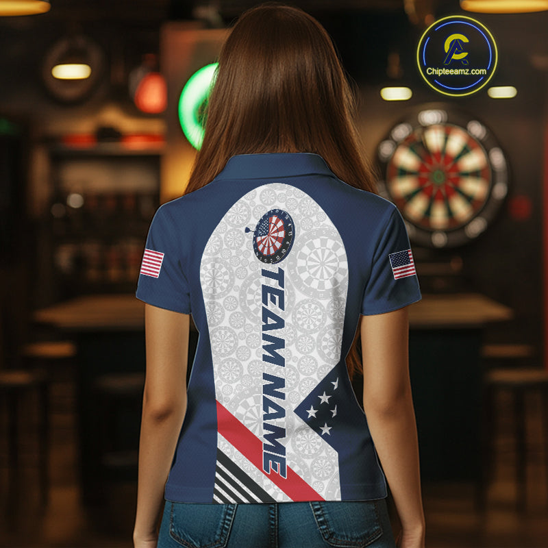 Custom Patriotic Dart Jerseys For Players, US Flag Dart Team Polo Shirts For Women IPHW9696