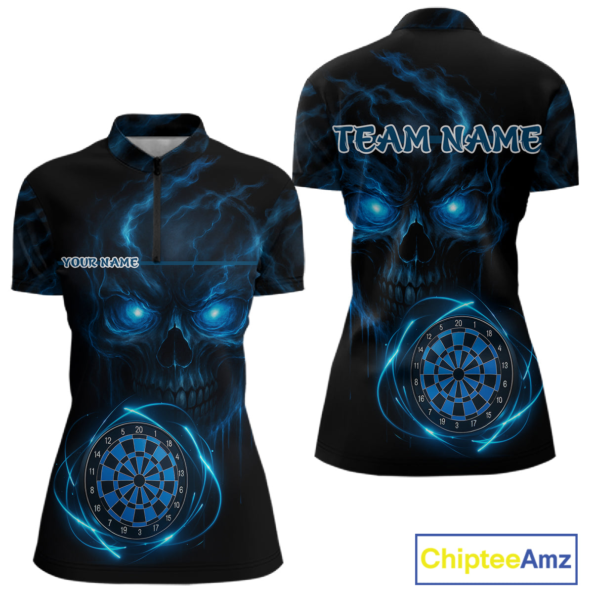 Custom Lightning Red Skull Dartboard 1/4-Zip Dart Shirt For Women Outfit Skull Dart Team Jerseys NYN0929