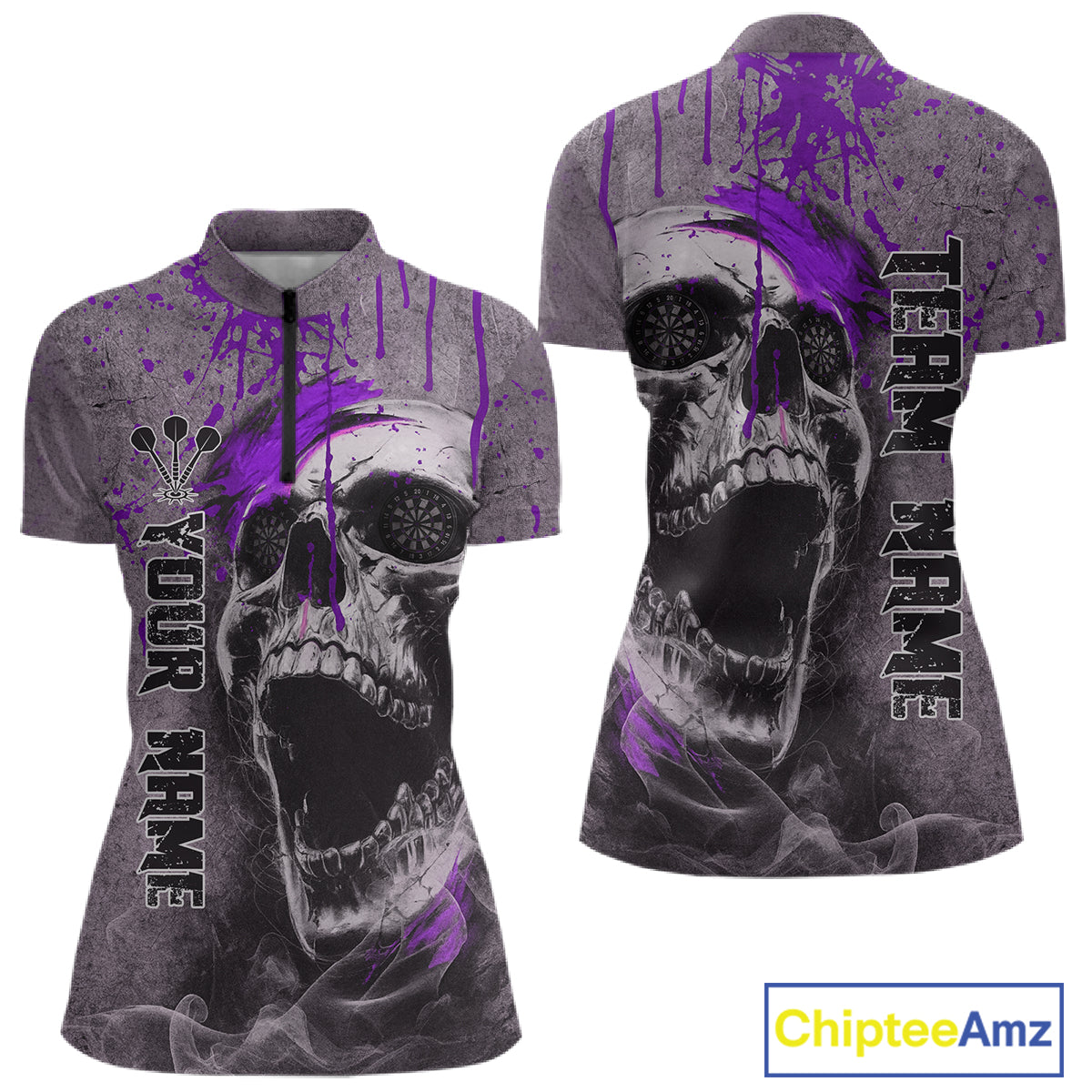 Custom Blue Dripping Skull Grunge 1/4-Zip Dart Shirt For Women Dartboard Outfits Dart Jersey NYN1320