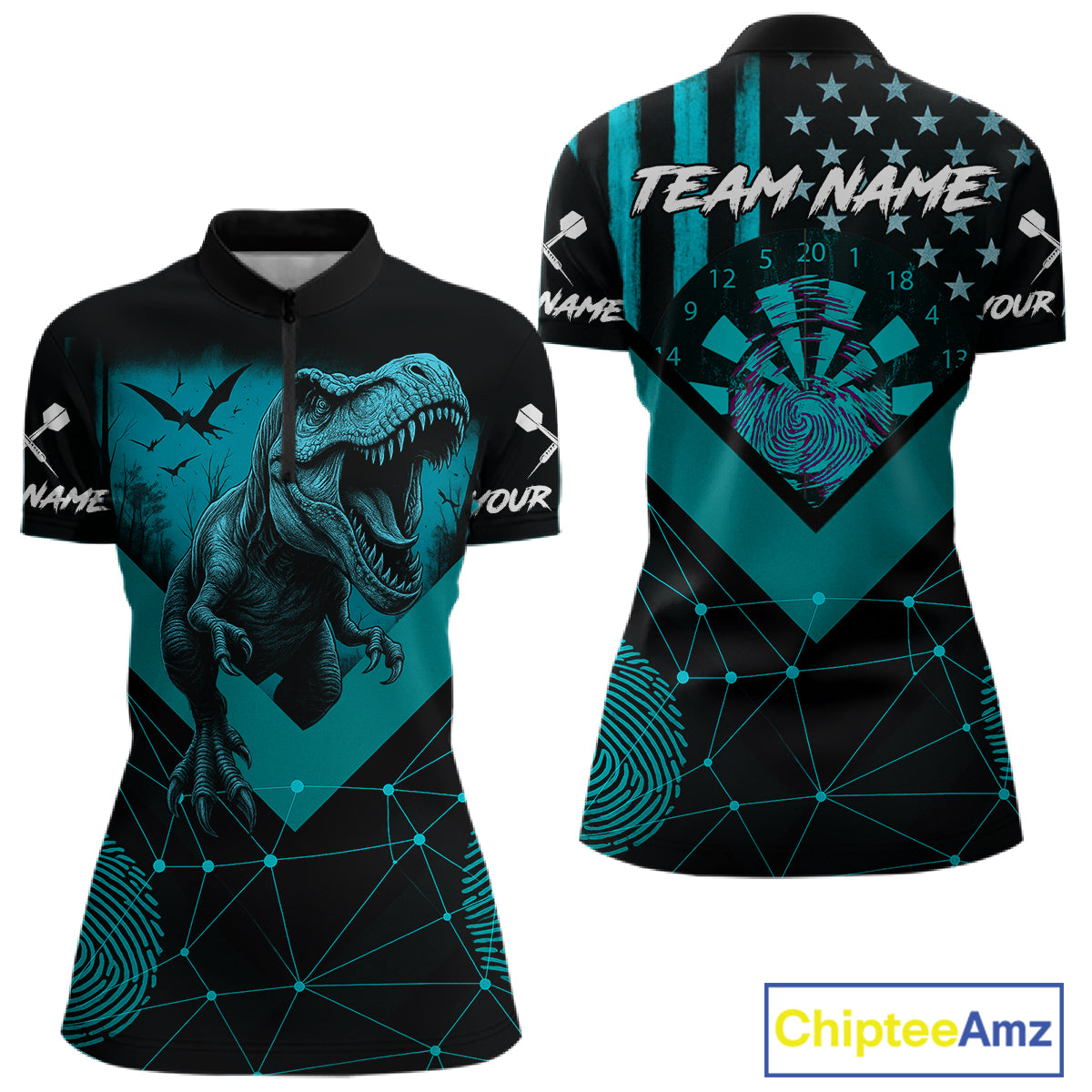 It's In My DNA Custom Turquoise Dinosaur Dart 1/4-Zip Shirt For Women US Flag Dart Jerseys NYN1366
