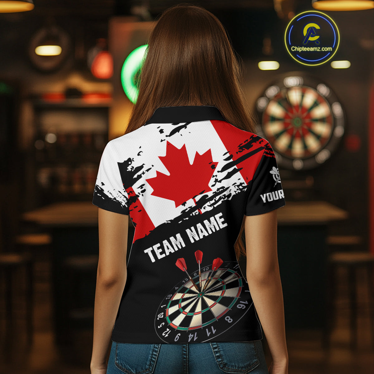 Personalized Grunge Canada Flag Dart Women Quarter-Zip Shirt, Patriotic Canadian Dart Jerseys TDM1187