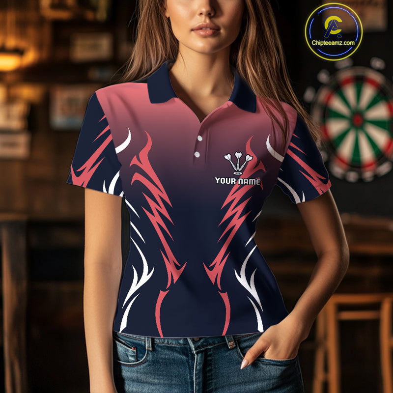 Women’s Custom Dart Shirt, Red-To-Black Color With Lightning Dartboard Dart Jersey NYN0247