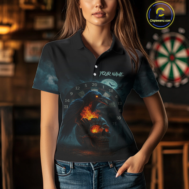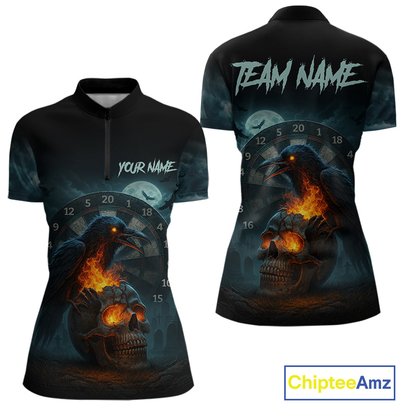 Personalized Blue Raven & Skull Grunge Dart Jerseys, Dart Team Shirts For Women Custom NYN1096