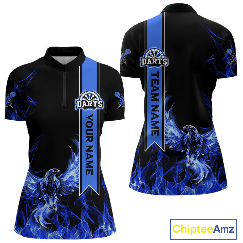Custom Blue Flames Eagle Dart Shirts For Women Eagle Dart Team Jerseys Personalized NYN1110