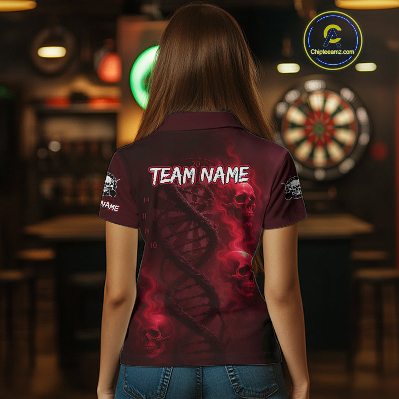 Darts - It's Is In My DNA Personalized Red Dart Shirt For Women Skull Dartboard Dart Team Shirts NYN1125