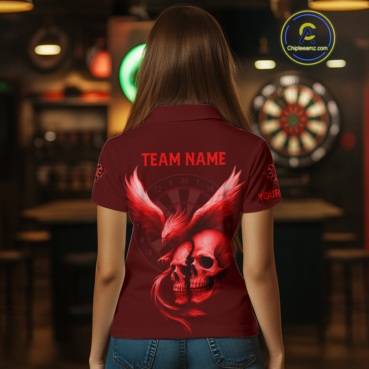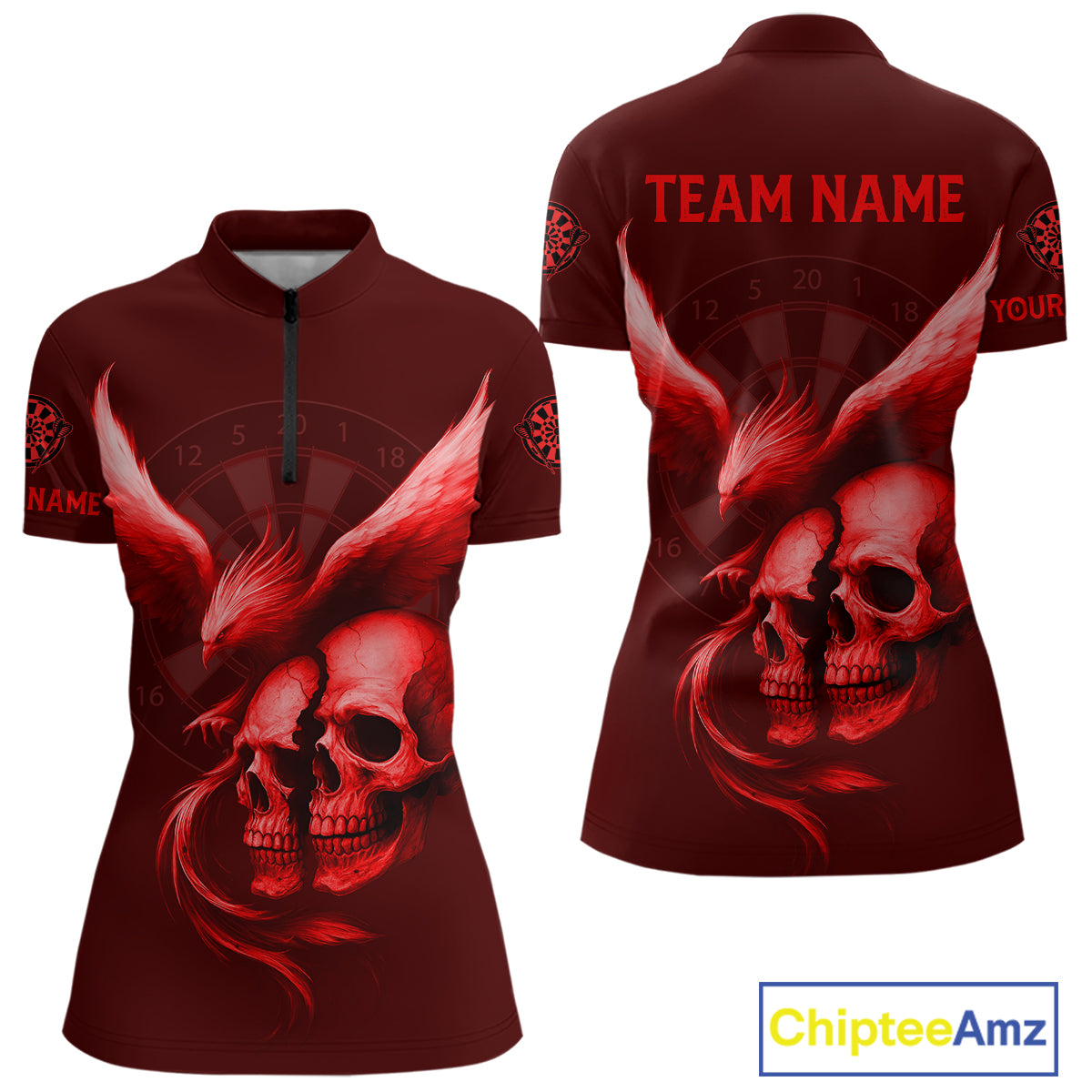Darts Shirt For Women Personalized Eagle Skull Dartboard Dart Team Jerseys | Red NYN1154