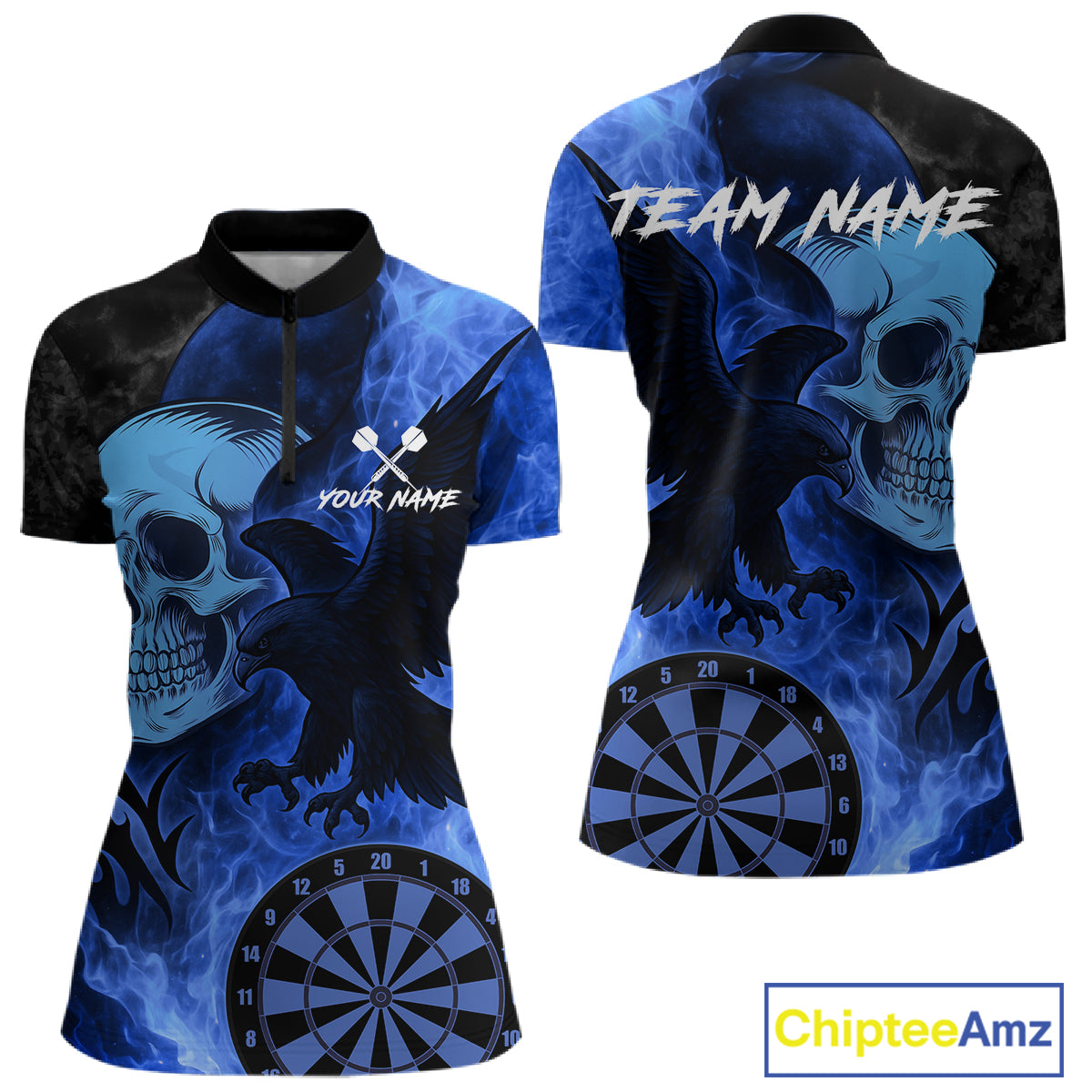 Darts Shirt For Women Personalized Flame Eagle Dartboard Dart Team Jerseys | Blue NYN1156