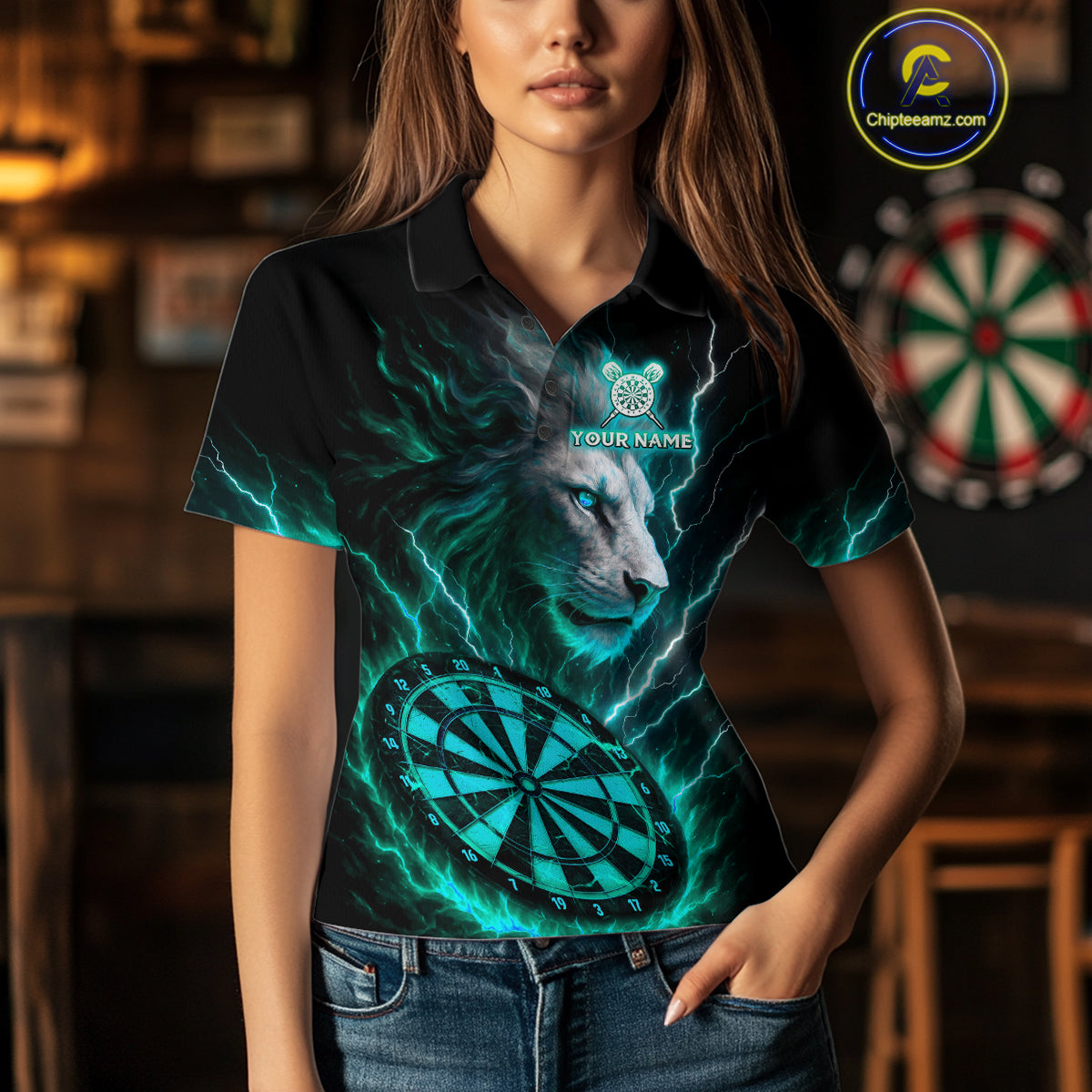 Turquoise Custom Women Darts Shirt With Lion Personalized Lightning Dartboard Dart Jerseys NYN1221