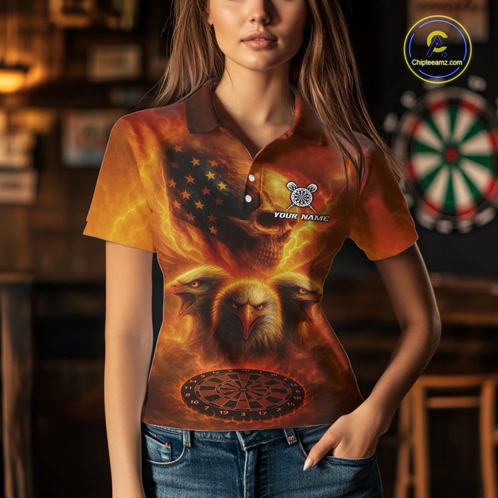 Personalized Flame Dart Shirt Custom Yellow Patriotic Dartboard Dart Jerseys For Women NYN1225