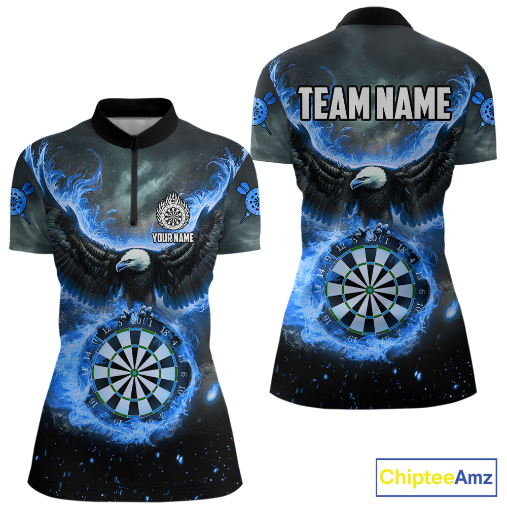 Personalized Fire Flame Blue Dartboard Eagle Dart Shirts For Women, Darts League Team Jerseys TDM5373