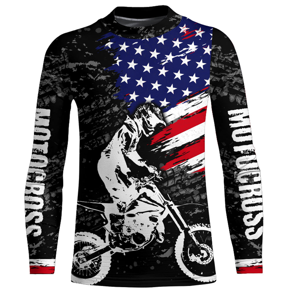 American Flag Motocross Jersey UPF30+ Patriotic Dirt Bike Racing Shirt Adult Youth Off-road XM121
