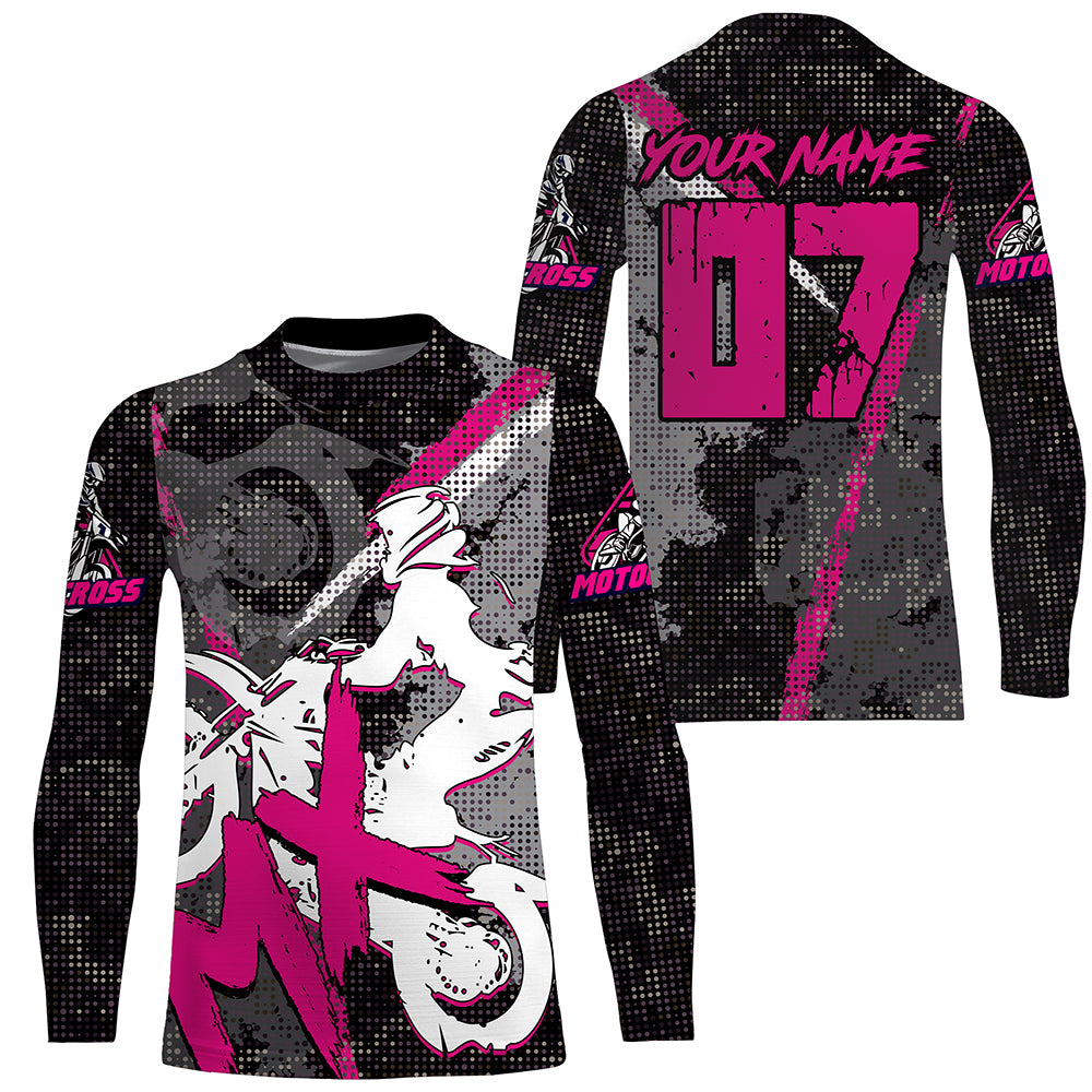Kid Men Women Custom Pink Motocross Off-Road Jersey UPF30+ Extreme MX Dirt Bike Shirt Motorcycle PDT614