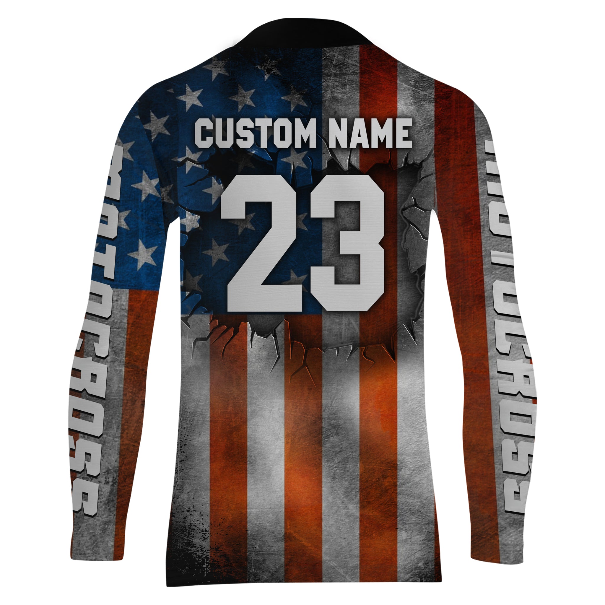 Motocross Jersey UPF30+ American Flag Dirt Bike Racing Adult&Kid Extreme Off-Road Shirt XM62