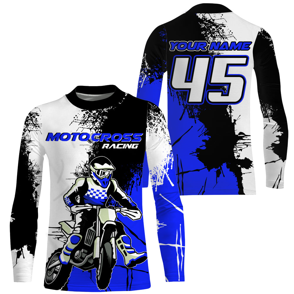MX Jersey Kid Men Women UPF30+ Custom Dirt Bike Shirt Blue Motocross Racing Off-Road Motorcycle PDT592