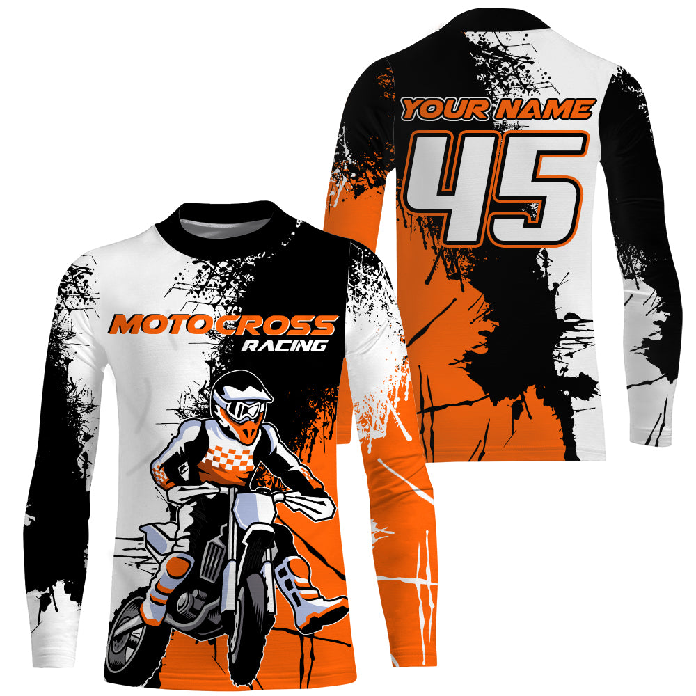 MX Jersey Kid Men Women UPF30+ Custom Dirt Bike Shirt Orange Motocross Racing Off-Road Motorcycle PDT593