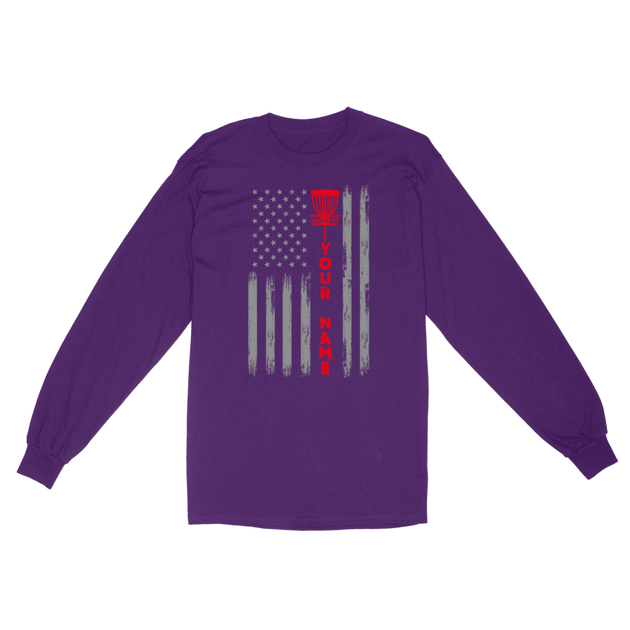 American Flag Disc Golf Long Sleeve custom name patriotic Disc Golf shirt D03 NQS9916