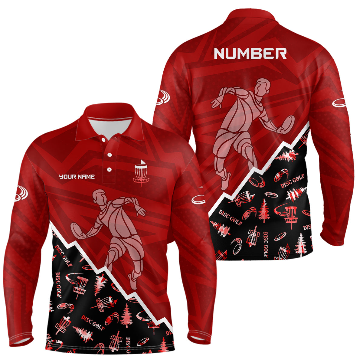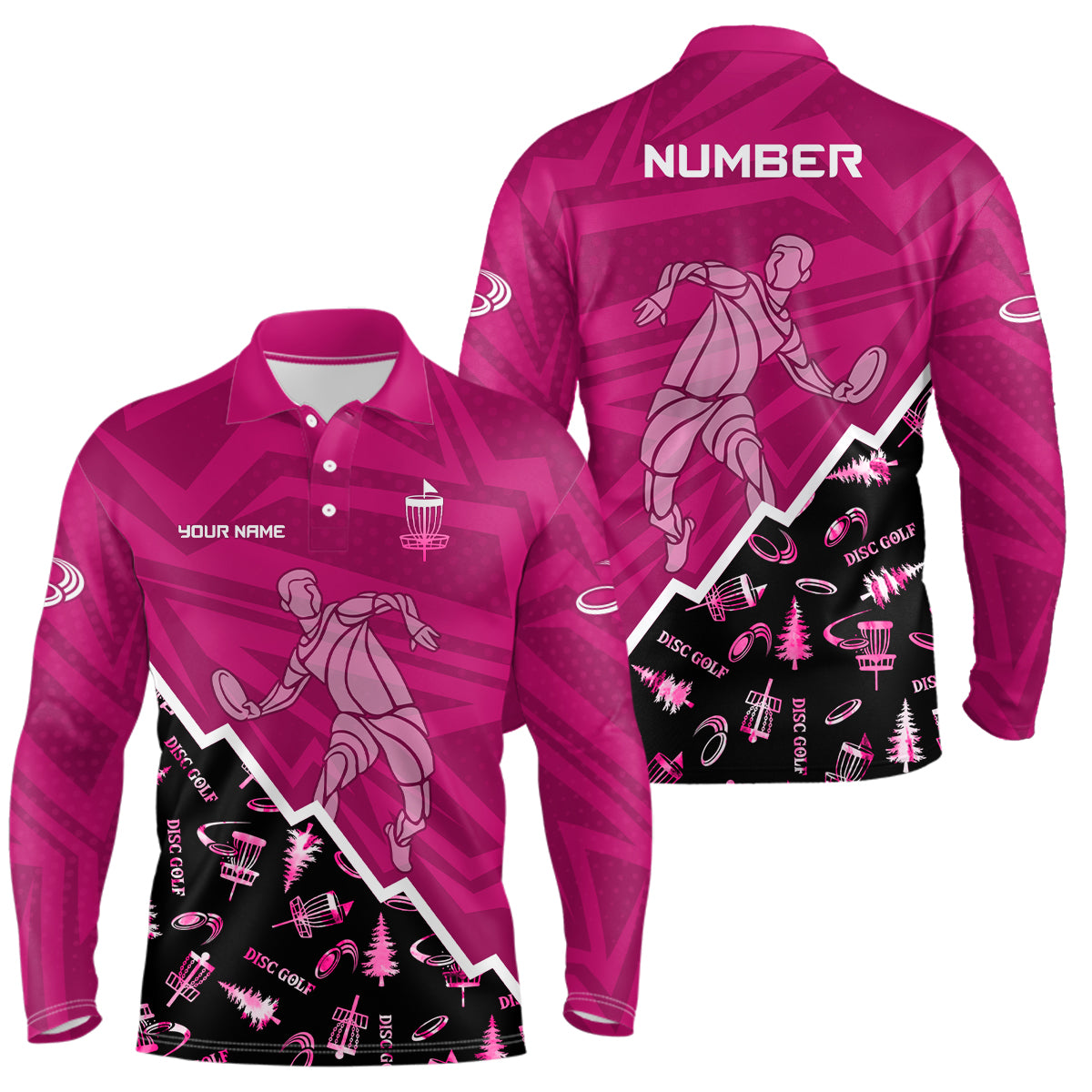 Pattern Color Mens Disc Golf Polo Shirt Custom Name & Number | Pink, Purple, Red YYD0045