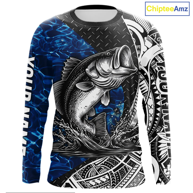 Largemouth Bass Fishing Blue Fishing Shirt Custom Name Long Sleeves, Fishing Gift NHT383