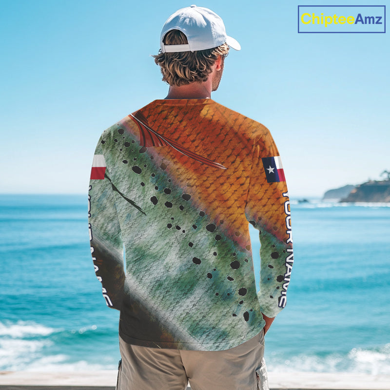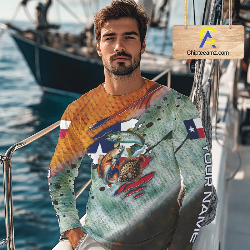 Texas slam redfish trout flounder scales Texas flag Custom patriotic fishing long sleeve shirts NQS10163