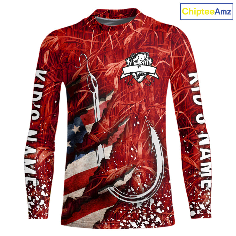 American flag fish hook red camo fishing custom sun protection performance long sleeve fishing shirt NQS10012