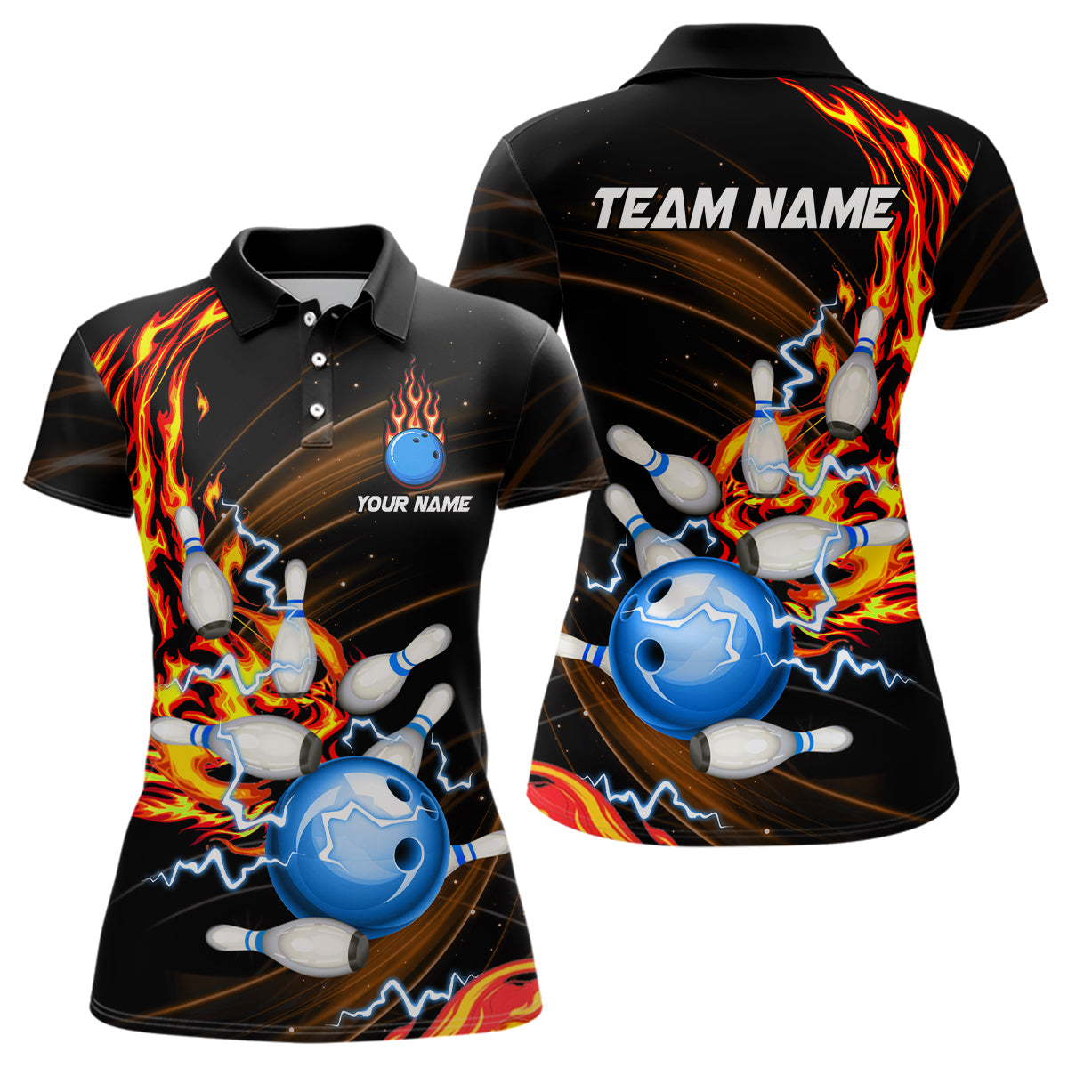 Womens bowling shirts Custom Orange flame Blue Bowling ball and pins Team league bowler Jerseys NQS8566