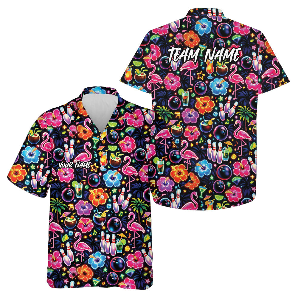 Custom Colorful Tropical Plants And Flamingo Hawaiian Bowling Shirt For Men And Women IPHW10859