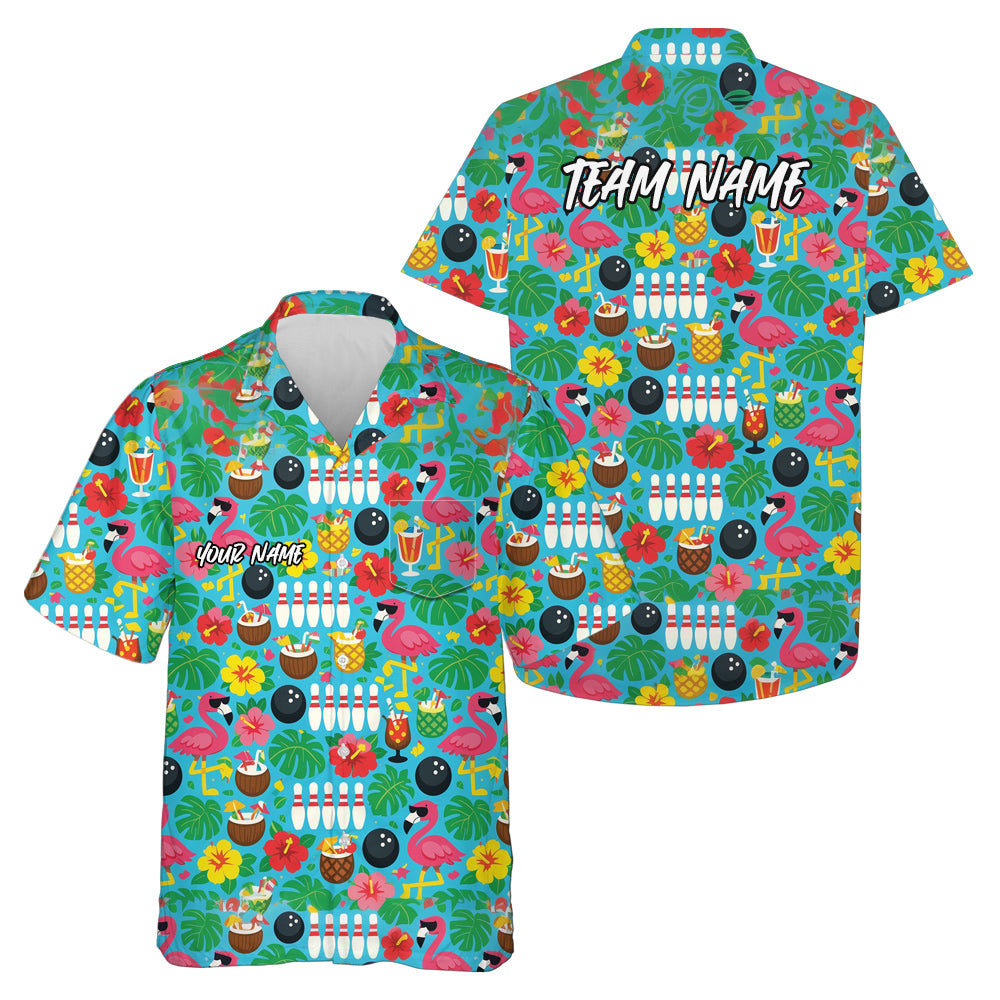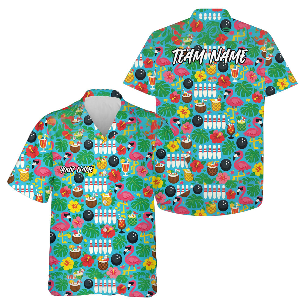 Custom Colorful Tropical Plants And Flamingo Hawaiian Bowling Shirt For Men And Women IPHW10860