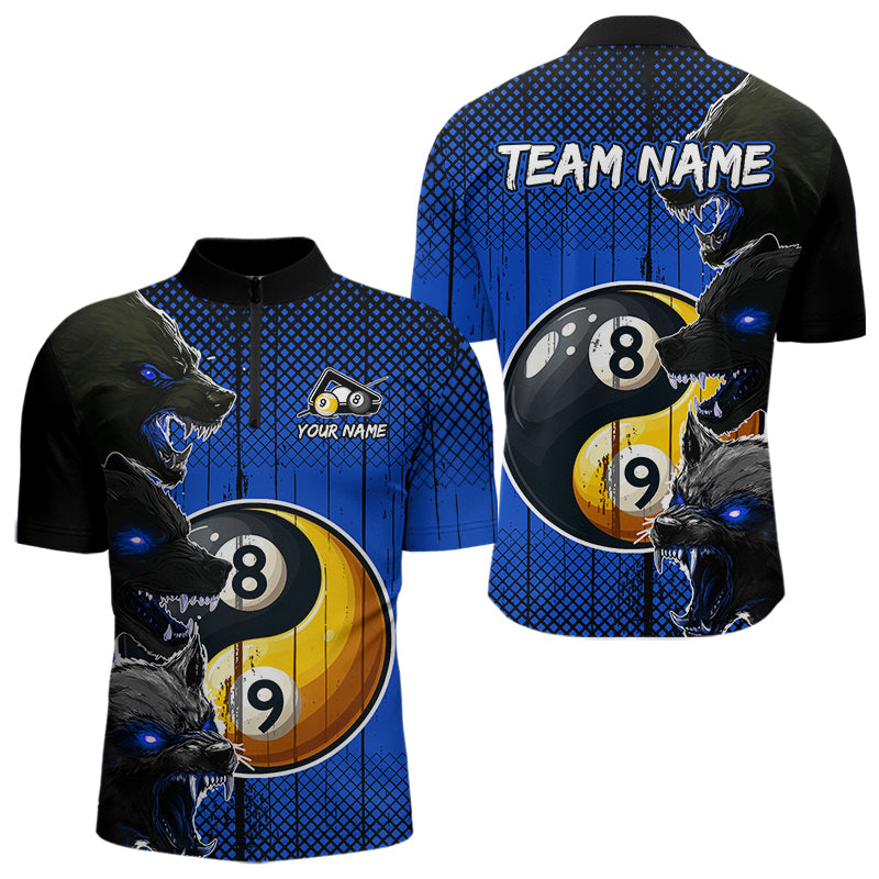 Funny Ying And Yang Eyes Of Wolf Billiard Shirts For Men Custom 8 & 9 Ball Billiard Jerseys | Blue TDM3597