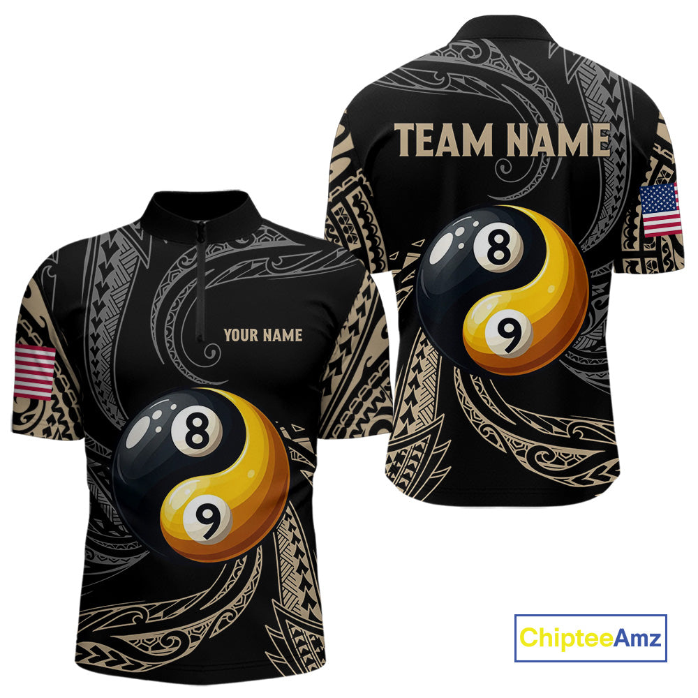 Personalized Funny Yin And Yang Tribal Billiard Shirt For Men Custom 8 Ball & 9 Ball Pool Jerseys TDM4506