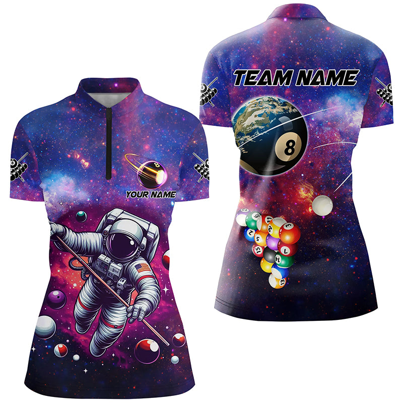 Blue And Purple Galaxy Astronaut Billiard Balls Jerseys For Women Custom 3D Funny Billiard Shirts TDM2024
