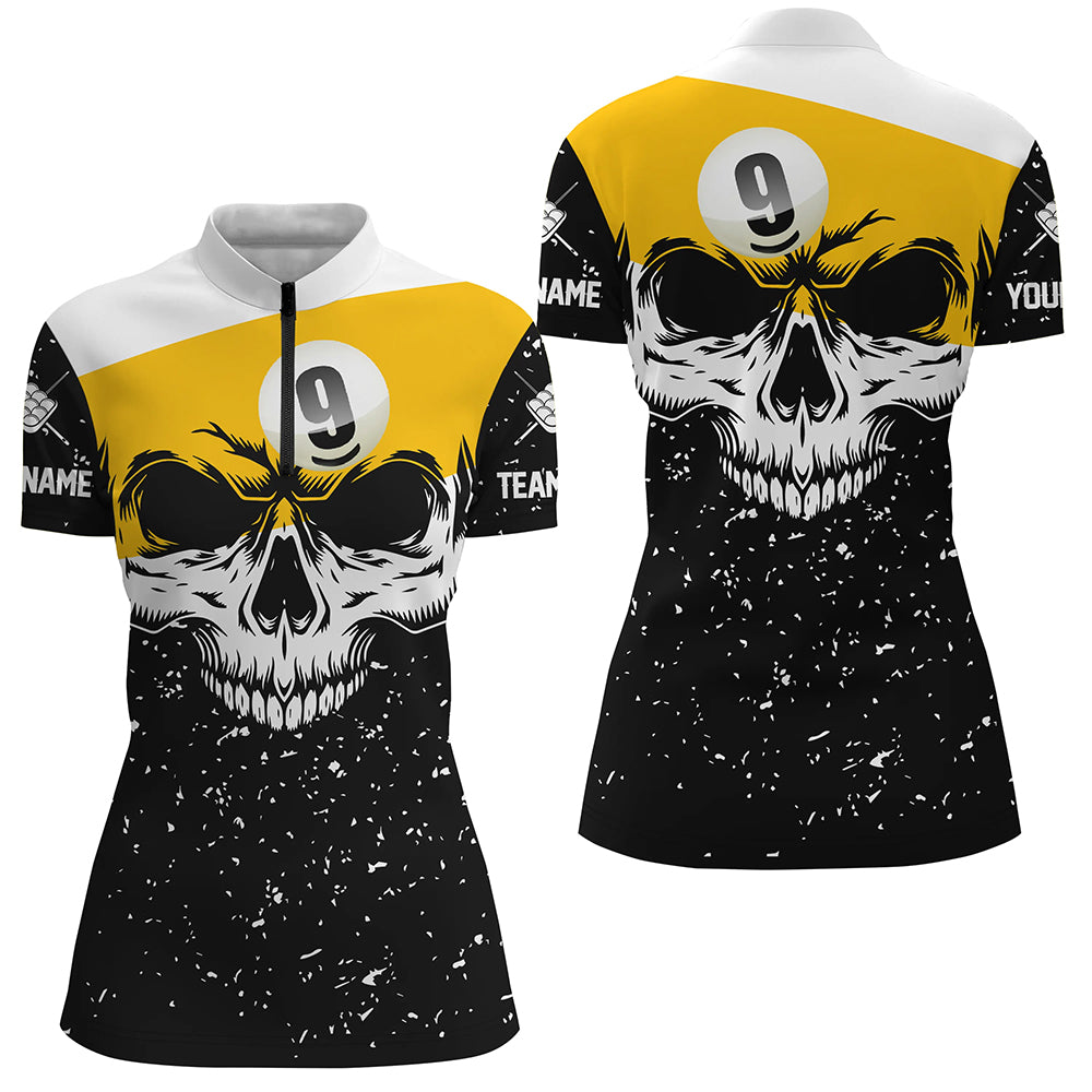 Funny Skull 9 Ball Pool Custom Grunge Black White Billiard Shirts For Women, Billiard Jerseys Apparel TDM2139