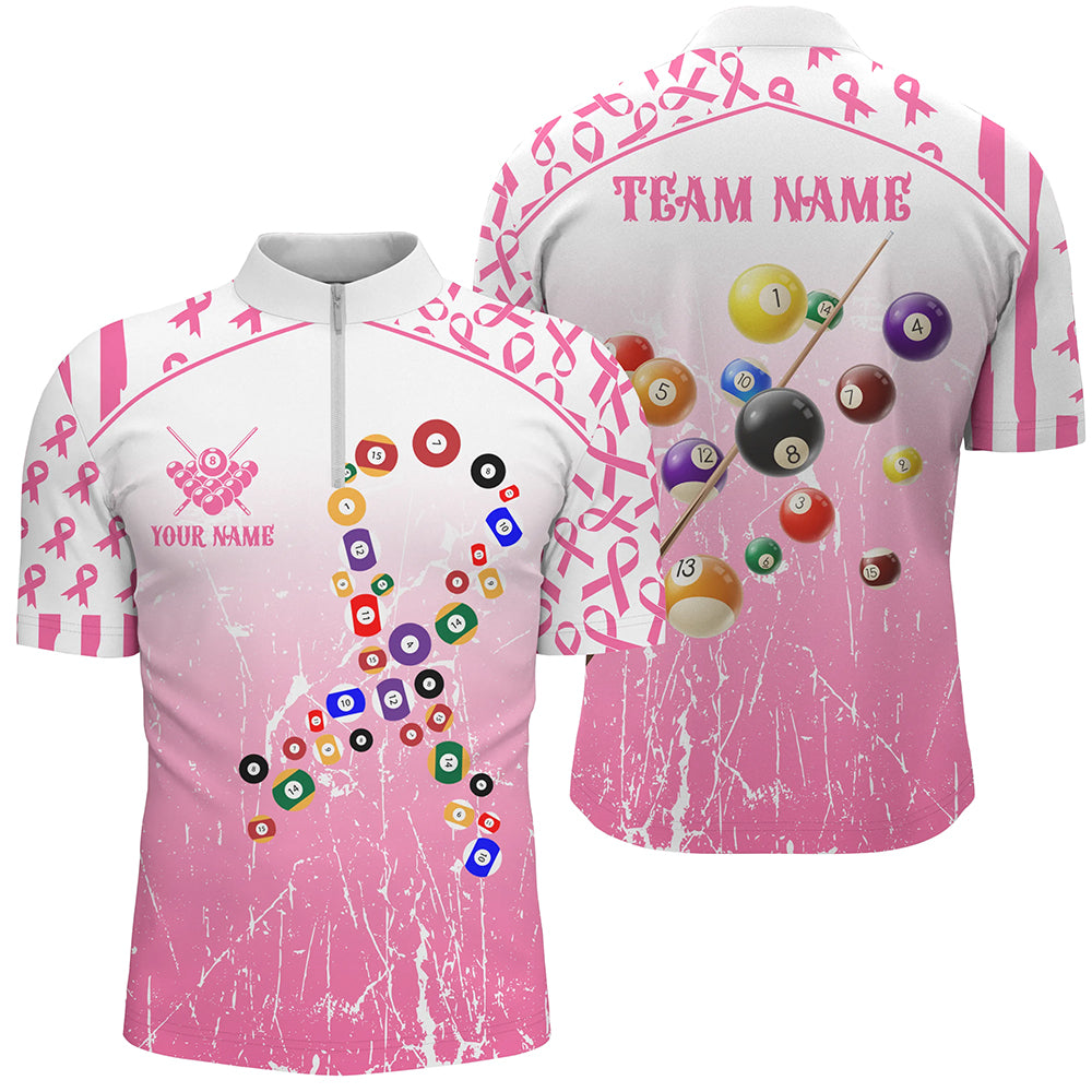 Colorful Billiard Balls Custom Pink Billiard Shirts For Men, Funny Breast Cancer Billiard Jerseys TDM2368