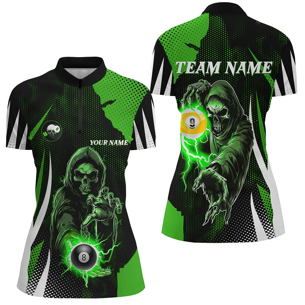 Funny Green Death Skeleton 8 Ball & 9 Ball Billiard Shirts For Women Custom League Billiard Jerseys TDM2463