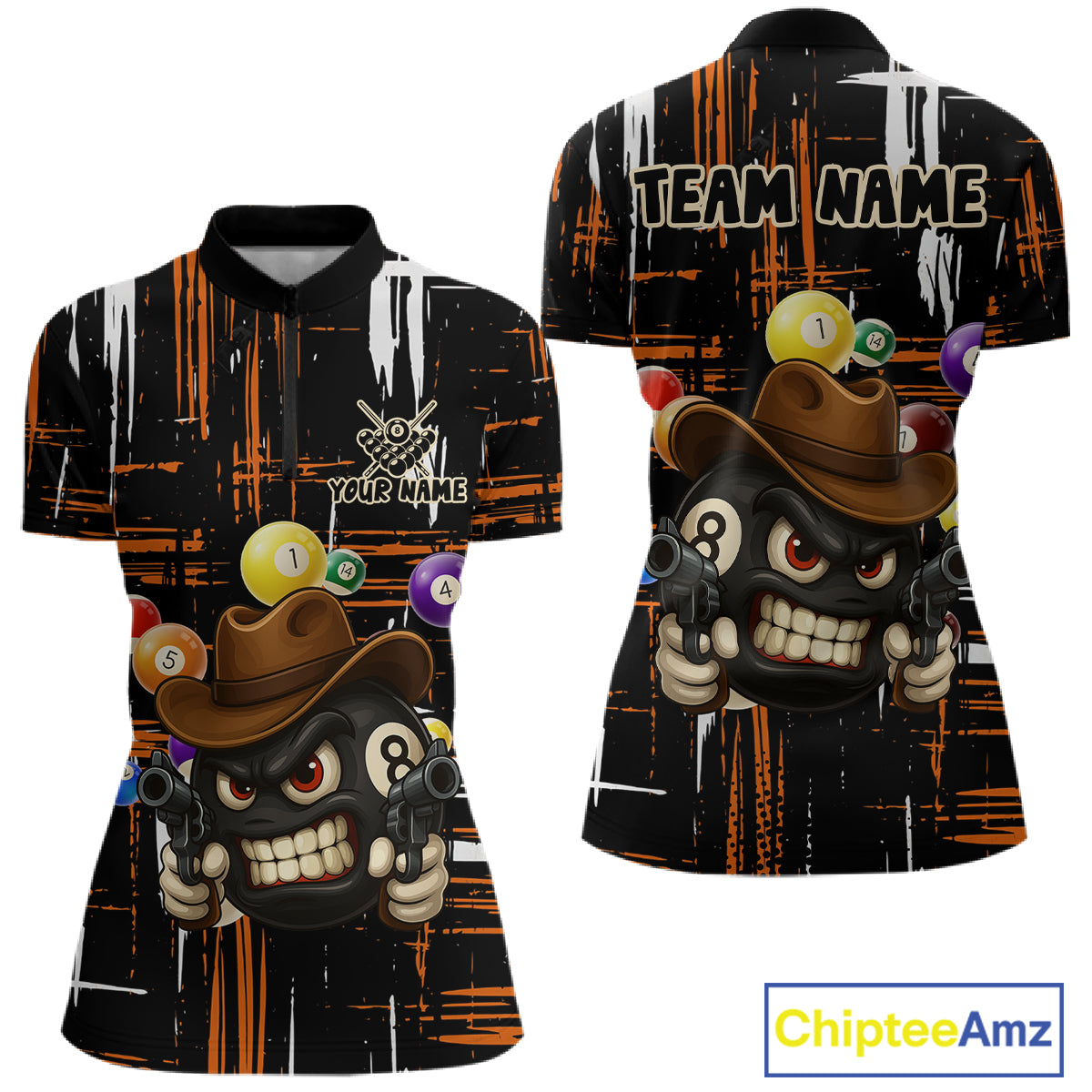 Personalized Orange Grunge Funny 8 Ball Billiard Shirt For Women, Pool Team Jersey Polo & 1/4 Zip TDM5285