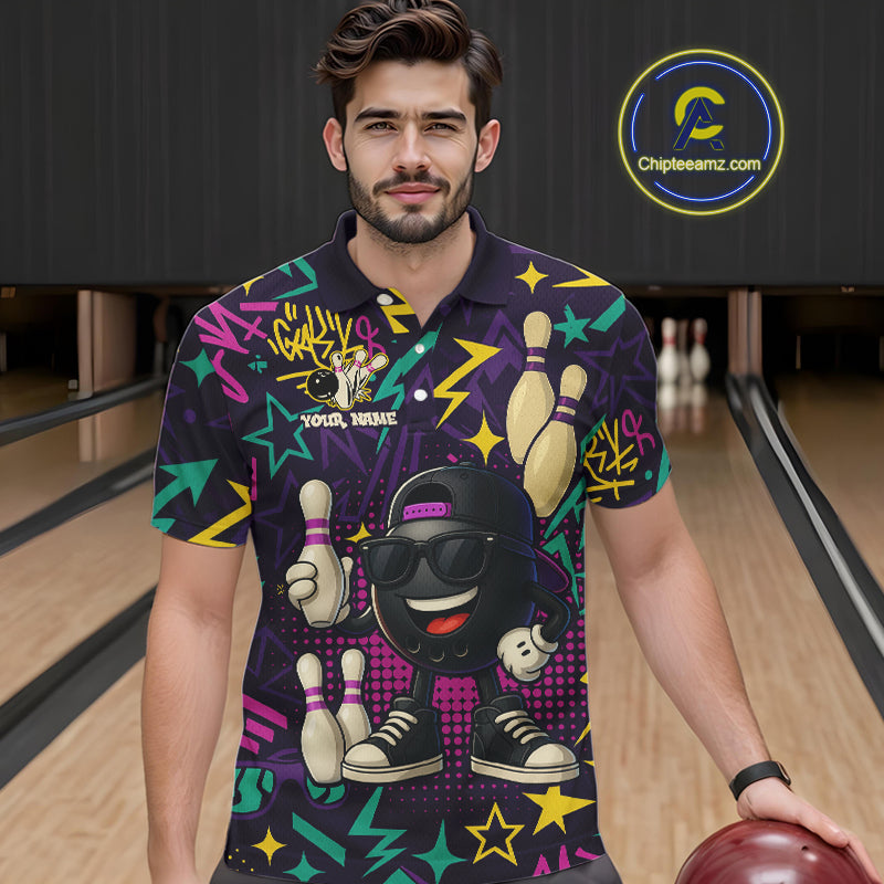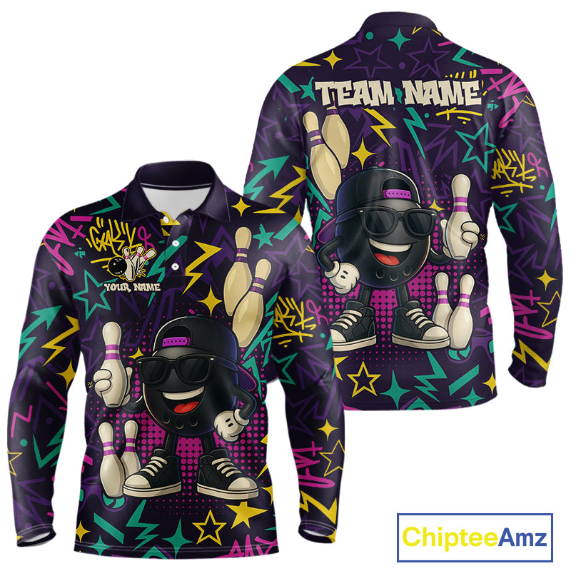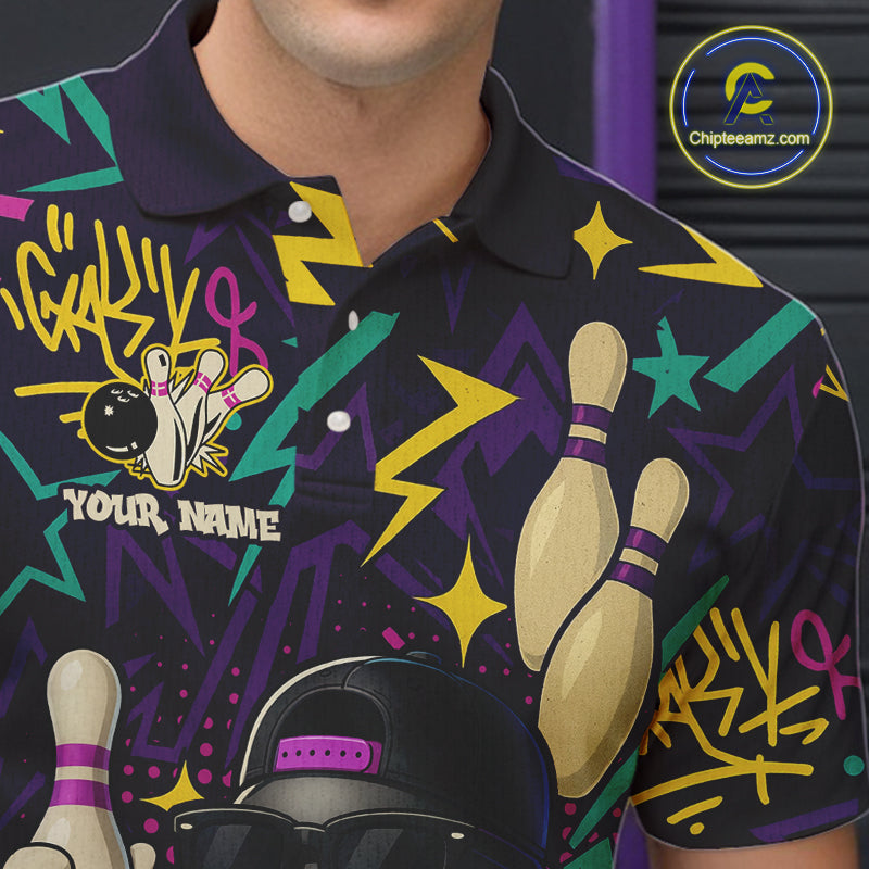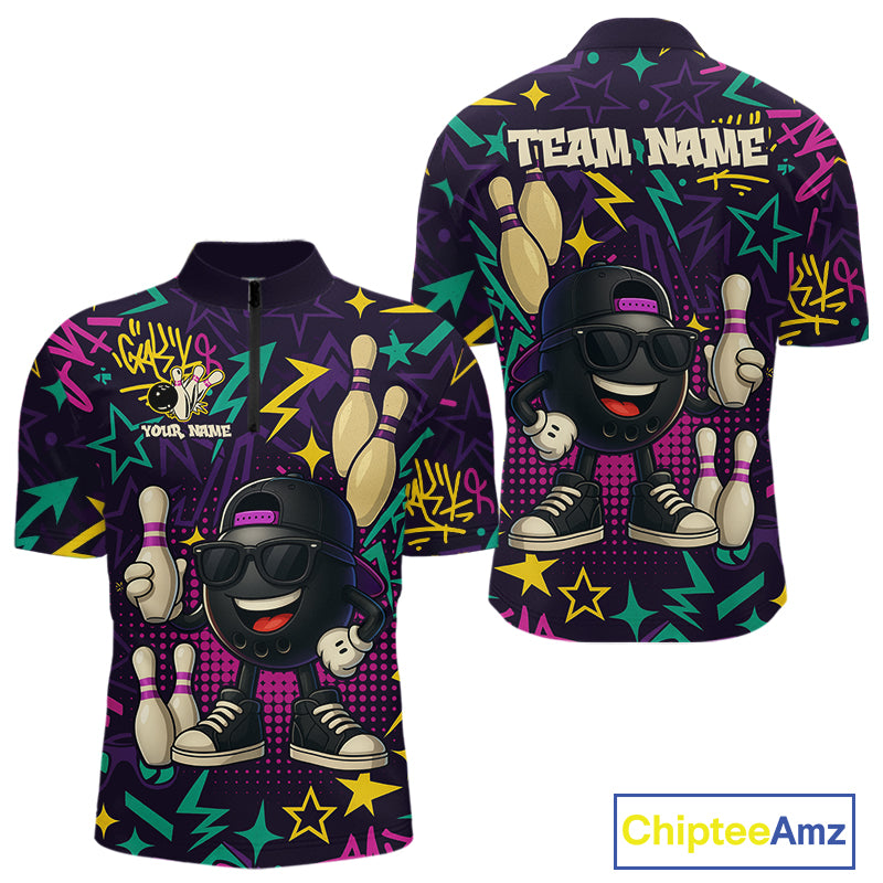 Funny Bowling shirts for Men custom purple graffiti pattern bowling team jerseys, gift for bowlers NQS10271