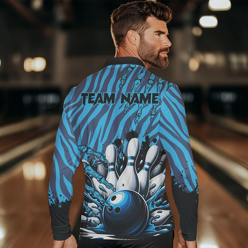 Funny Claw Blue Camo Men's bowling outfits custom bowling polo, Quarter Zip Shirts team jerseys NQS9704