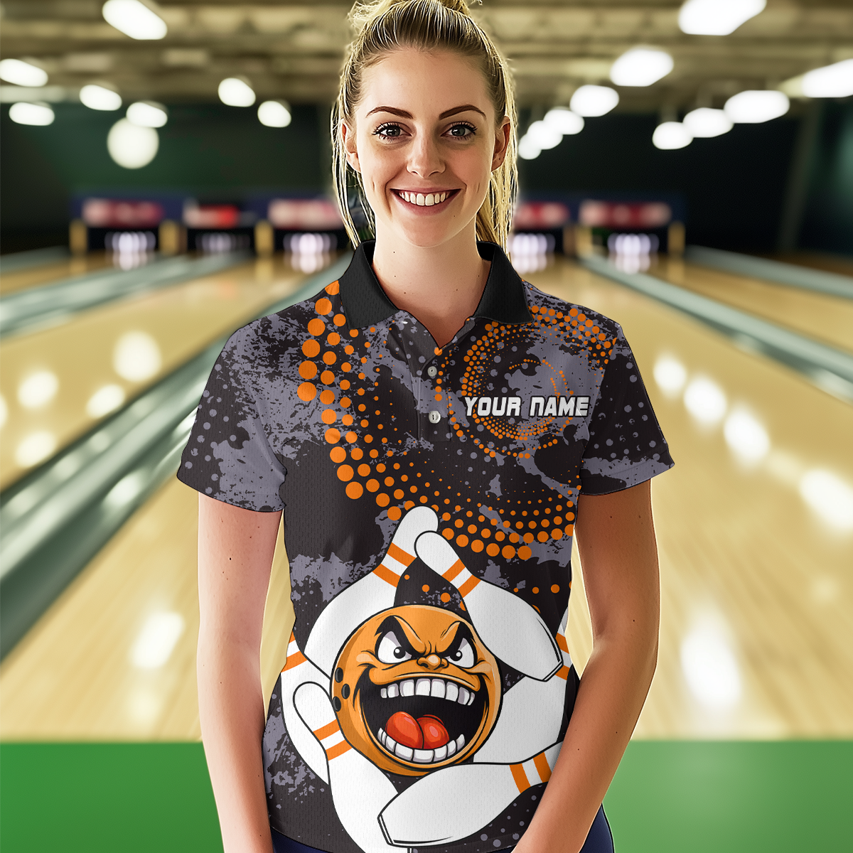 Orange Camo Bowling Shirt Funny Bowling Team Jersey for Women Polo Bowling Shirt QZT255